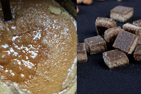 step7、借助工具挑起锅内的糖液,如果其呈现为丝状而且不粘手时,即可关火出锅。