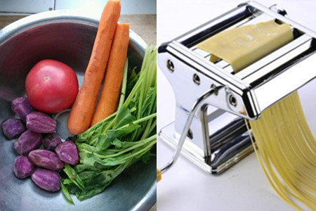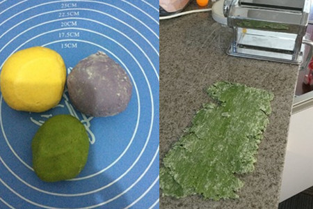 多种色彩丰富的水果和蔬菜都可以当做蝴蝶面的原料,例如火龙果、紫甘蓝、南瓜、紫薯、菠菜、胡萝卜等等。每种颜色的蔬果三十克对应面粉七十克,根据您的色彩喜好准备蔬果。