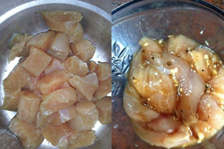 step5、处理一下鸡胸肉,放入水中洗净,然后切成小块。