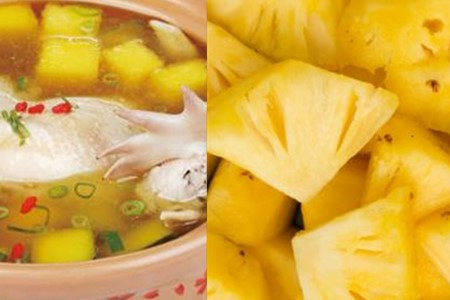 4.将鸡块,凤梨和苦瓜放入可煮汤的电饭煲中,加入八分清水并按下开关键即可。
