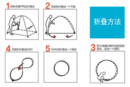 很多使用者认为部分带有软钢条的圆顶蚊帐和伞形蚊帐难以折叠,其实是没有找到折叠技巧。一、先把蚊帐支撑杆两边折叠成一个平面,把立体的蚊帐扭转成一个平面的蚊帐。二、再把蚊帐的底边的两个支撑点连接起来固定好,变成一个圆形。三、把圆形的蚊帐扭换成一个“8”字性。四、再把“8”字性折叠成一个圆形。这样一个庞然大物的蚊帐就被收复了。