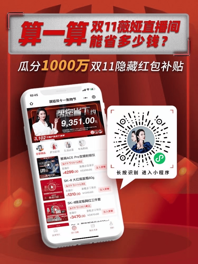 亮点年年有,今年特别多,为了解决“双十一怎么买最划算?”这个终极痛点,今年薇娅推出了“薇娅双十一爆品清单”小程序。从护肤彩妆、生活必备、电器数码、食品、鞋服饰品、旅游六个大的方面分类整理好,每个大类下又划分细分品类再到单品,每个单品附有产品机制以及薇娅视频讲解,对于心水好物可以选择“加入清单”,一键计算省钱金额,在微信小程序搜索“薇娅惊喜社VIP中心”即可使用,大大降低了双十一的选购难度和时间成本,不失为一款省心又贴心的便捷小工具。