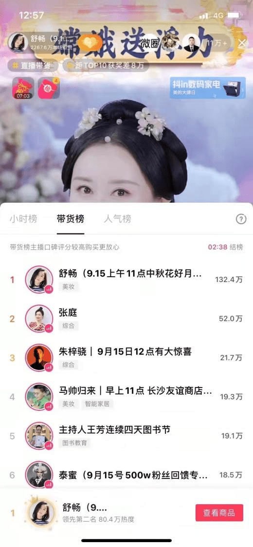 舒畅是谦寻旗下新晋明星主播。抖音直播首秀取得4000万GMV的战绩,818期间以6457万的成绩位列抖音明星带货榜第八,并获得官方“抖音818新潮好物节王牌明星”称号,9月份更是冲上抖音直播带货帮第一名。