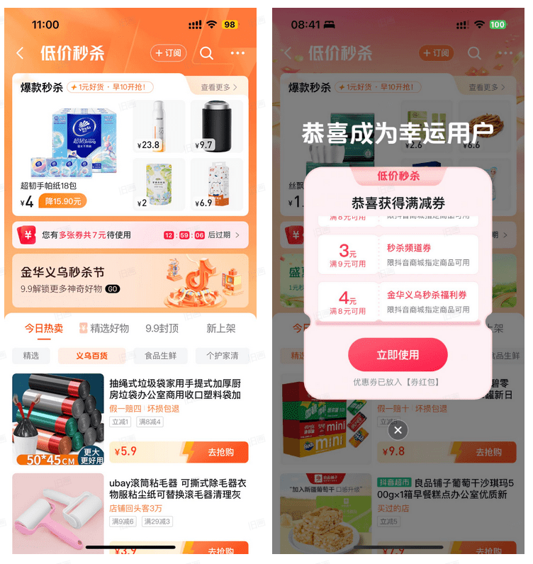 本次金华义乌秒杀节期间,平台积极引导商家完成全场域布局,以最大程度上释放增长潜力,提升销量爆发的确定性。