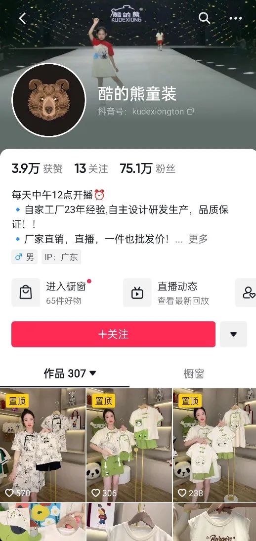 在这样的势能发展下,品牌增长势头正在持续加速。如今酷的熊品牌自播单日已突破200万销售额,单店销量破100万单。抖音粉丝也突破了70万。