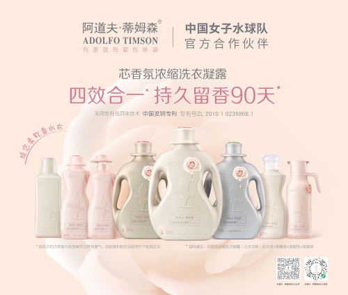 同时,阿道夫·蒂姆森芯香氛洗衣凝露可实现“快洁净、快漂洗”,满足当下快节奏生活的需求。据了解,无论是普通型还是浓缩型产品,阿道夫·蒂姆森芯香氛洗衣凝露的活性物含量都高于行业标准。尤其是其超浓缩产品,活性物含量达到50%,用量更省,更节约用水,洗衣更高效快捷。